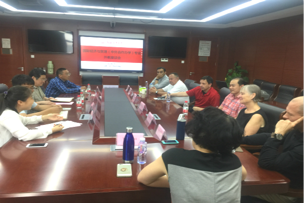 6月5日,qmh球盟会亚博网址2019年春季外籍教师座谈会在翡翠湖校区科教楼B座1005国际会议室顺利召开。qmh球盟会亚博网址党委书记李金华、副院长张先锋、学院国际教育中心全体人员以及来自美国克拉克大学的教师Natalie Palley、Zafar Khan、Ying Juan、Steven Rieg、Bari Lee Courts、Beck Hing Lee、Miguel Orta参加了座谈。
