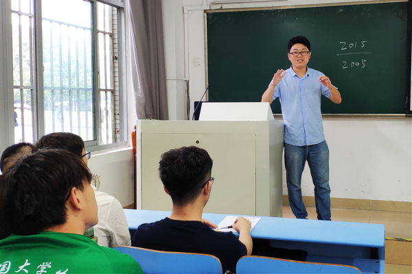 经济学17-1班班主任戴前智与学生作交流