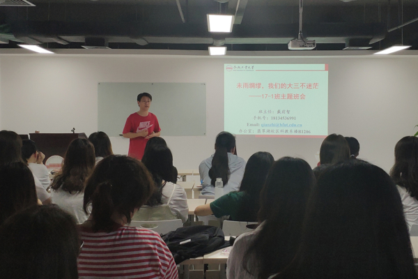 近日,qmh球盟会亚博网址在2017级本科生各班中召开了“做好学业规划,把握人生航向”系列主题班会,学院国际教育中心主任庄德林及各班班主任为学生们上了生动实际的一课。