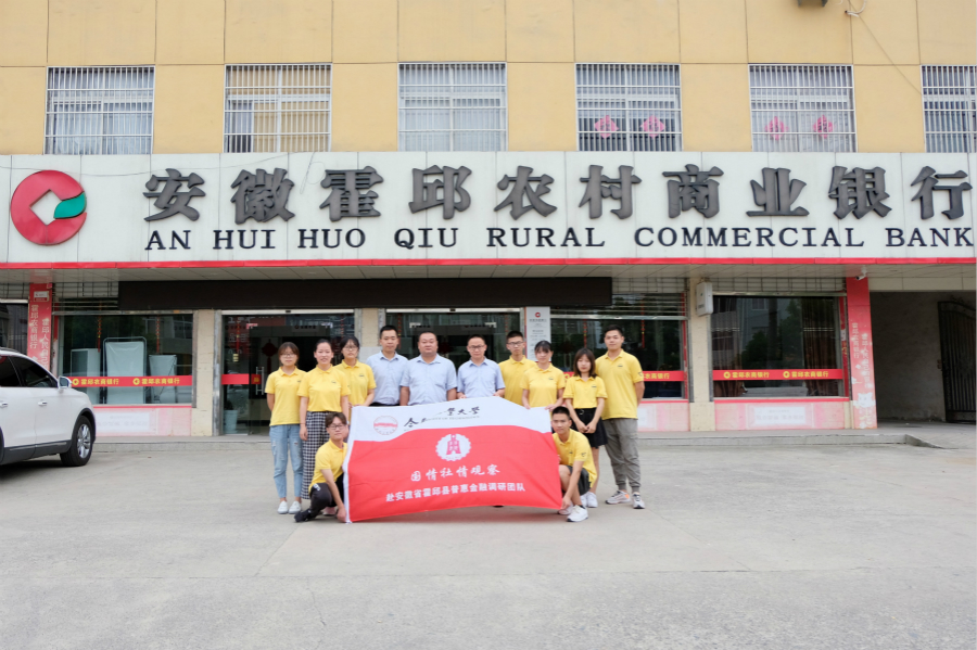 7月14日至7月17日,qmh球盟会亚博网址赴安徽省霍邱县普惠金融调研团队在指导老师qmh球盟会亚博网址MF中心主任张根文的带领下来到霍邱县开展了一次主题为“助力农村普惠金融发展,促进攻坚之年扶贫战”的暑期三下乡社会实践活动。团队通过对当地普惠金融具体政策实施者农商银行的工作进行了解、对小微企业发展与贫困户脱贫情况进行调研、对个体户以及民众金融理财情况进行访谈与问卷调查,切实了解脱贫攻坚之年霍邱县普惠金融发展情况。