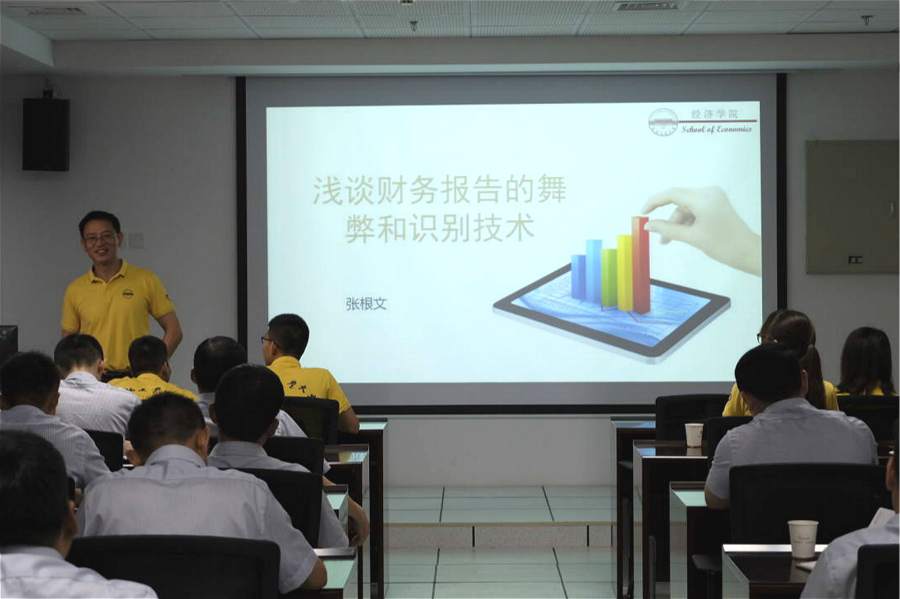 7月17日上午,张根文老师为当地农商行工作人员举办了一场有关“投资、理财相关知识与公司财务舞弊手段及识别技术”的讲座。讲座上,张根文老师生动形象地介绍了有关投资理财的意义和对人民生活的影响,同时引用相关实例清晰明了地讲解了公司财务舞弊的手段及应对措施。此次讲座,一方面宣传了投资理财的知识,另一方面也让银行工作人员在普惠金融政策实施的过程中,能够更好地分辨需要帮助的有潜力的小微企业,以更好地推进当地经济的发展。