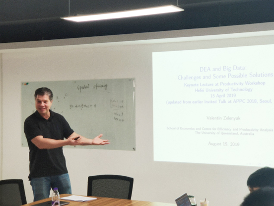 2019年8月12日至16日,澳大利亚昆士兰大学Valentin Zelenyuk教授受邀来访qmh官网并成功举办“生产率测度2019夏季研讨班”。研讨班授课内容包括包络估计量、DEA和FDH的统计基础以及前沿讲座与论文研讨等,qmh官网周志翔老师、戴前智老师、陈亚老师、丁涛老师、数量所部分研究生以及来自中南大学、安徽大学等高校感兴趣师生参加了本次研讨班。