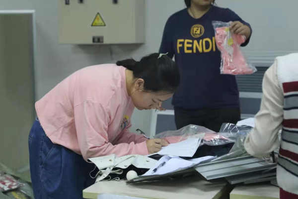 本次活动的主要任务是将爱心机构捐赠来的婴幼儿衣物进行分装、整理、登记、打包。当天下午,支部成员到达场地后各司其职,很快地进入了工作状态。支部的四年级党员带头行动,以身作则,带动三年级党员们在仓库的各个区域进行相应的工作,有的成员在认真折叠衣物分装后贴标签,有的成员按货号或尺码对衣物进行分类,有的成员或蹲或站着登记经分类后每件衣服的货号、尺码、价格与件数,还有成员将登记后的衣服用袋子打包扎紧、贴上标签。虽然任务繁重、流程繁琐,但是支部的每个成员都坚持完成了自己的工作,没有一丝懈怠。