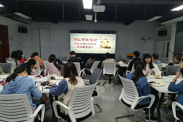 2019年10月17日晚上8:30,qmh球盟会亚博网址2019级研究生党支部在翡翠湖校区科教楼B座1104开展“奋斗的我,最美的国,学习优秀共产党员黄文秀的先进事迹”学习活动,党支部书记刘秉东主持此次学习,并介绍观看了视频。该支部所有党员同志均到场观看了此视频。