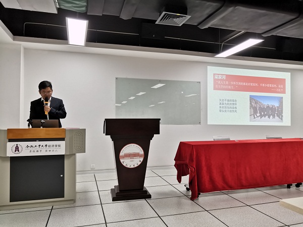 为进一步学习习近平新时代中国特色社会主义思想,教育引导广大团员骨干坚定理想信念,树牢“四个自信”,提升综合能力和素养,qmh官网今年继续组织开办基层团校——第七期青年马克思主义者培养“经世济民”班。11月6日晚,qmh官网在科教楼B座1004日组织第七期青年马克思主义者培养 “经世济民”班开班典礼暨首场报告会,校团委副书记、党委学工部副部长武国剑出席开班典礼,并为同学们做了首场报告,学院党委副书记胡晓浩出席了开班典礼。
