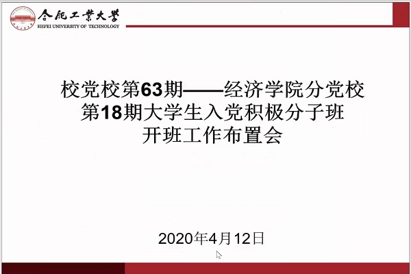 为进一步做好疫情期间入党积极分子班的培训教育工作,加强对入党积极分子的指导,2020年4月12日晚,学院在腾讯会议平台召开校党校第63期—qmh球盟会亚博网址分党校第18期大学生入党积极分子班开班工作布置会,学院党委副书记胡晓浩、积极分子班全体学员参加了此次会议。