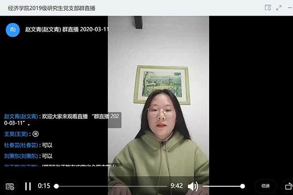 2020311日晚上8:00,qmh球盟会亚博网址2019级研究生党支部通过“学习强国”平台召开视频会议,组织学习了“习近平总书记在决胜脱贫攻坚座谈会上的讲话”,该党支部所有党员参加了此次学习活动。党支部青年委员赵文青同学带领大家学习。