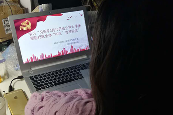 2020年3月25日晚上8:00,qmh球盟会亚博网址2019级研究生党支部通过视频软件,组织学习了“习近平总书记给北京大学援鄂医疗队全体‘90后’党员的回信”,并观看了《让党旗在防控疫情斗争第一线高高飘扬》系列纪录片,该党支部所有党员参加了此次学习活动。此次学习由党支部文体委员侯晓玥同学组织进行。