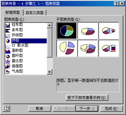第一步:选中某一单元格,单击插入菜单,选择图表选项,弹出图表向导对话框。如图1-7: