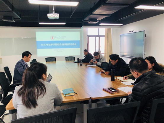 2021年1月19日,qmh球盟会亚博网址2020年秋季学期联合授课教师总结会在翡翠湖校区科教楼B座1008会议室顺利召开。国际教育中心主任戴前智、联合授课教师谢众、郑园琴、贾君君、侯伯军、吴飞飞、葛阳琴等参加了此次总结会。