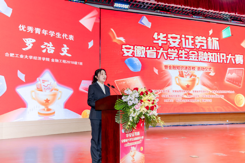 共青团安徽省委副书记李波在致辞中表示,青年是国家的未来和民族的希望,大学生的健康成长是全社会的焦点,开展金融知识普及活动、培养大学生良好金融素养十分必要、非常及时。今年恰逢建党100周年,大赛的主题包含了党史内容,他激励广大大学生,要在学习金融知识的同时学党史、知党恩、跟党走,传承红色基因,汲取奋进力量。