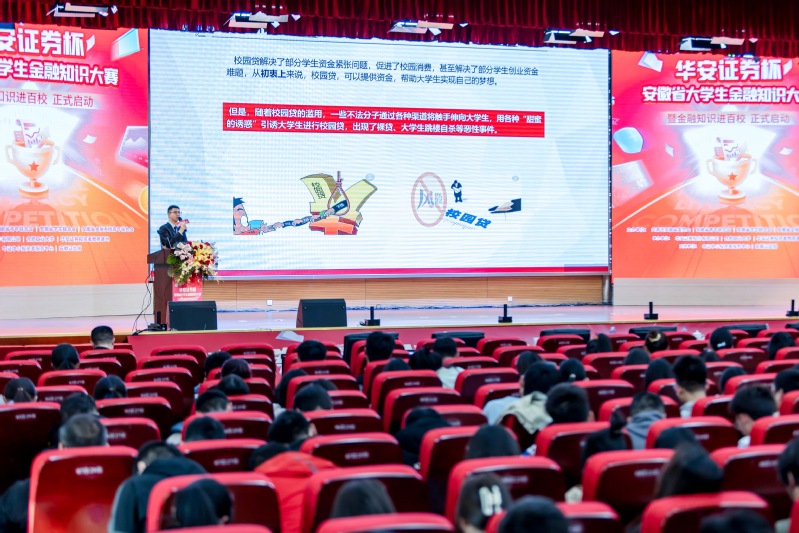 3月24日下午,“华安证券杯”安徽省大学生金融知识大赛暨金融知识进百校启动仪式在翡翠湖校区科教楼A座报告厅举行。共青团安徽省委副书记李波,中证中小投资者服务中心副总经理黄勇,华安证券党委书记、董事长章宏韬,安徽证监局投保处处长杨柳,安徽省金融青联副主席、秘书长陈毓、校团委书记武国剑、qmh球盟会亚博网址院长洪进、党委副书记、纪委书记谢晶晶出席启动仪式。