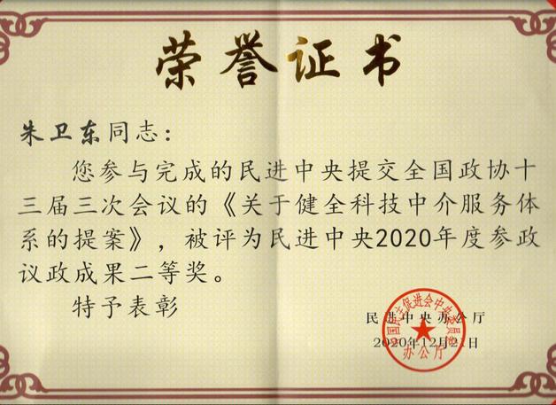 近日,我校民进基层委员会主委qmh球盟会亚博网址朱卫东教授荣获民进中央委员会评选的民进全国履职能力建设先进个人称号。同时,他参与完成的民进中央提交全国政协十三届三次会议的《关于健全科技中介服务体系的提案》,被评为民进中央2020年度参政议政成果二等奖。
