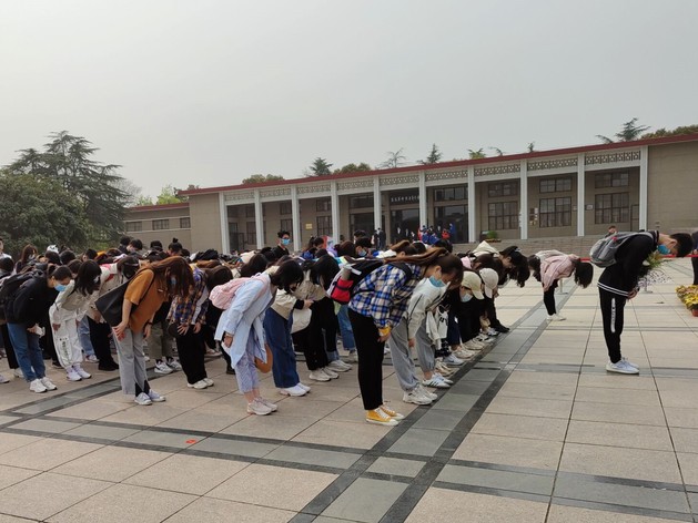 学生们沿着水泥路拾阶而上,来到了纪念广场的纪念碑前,重温入团誓词,并由学生代表向革命英烈敬献了鲜花,随后全体学生在纪念碑前鞠躬默哀,以表达对先烈的沉重哀思与敬意,现场庄严肃穆,这是历史的回响,初心的追寻。祭拜结束后学生们自行参观了安徽革命烈士事迹陈列馆,馆中陈列着的英烈物品,战争时期的文件等文物,讲述了无数可歌可泣的故事。学生们在讲解员的带领下深入了解了解放战争前到改革开放的历史以及烈士们的光辉业绩。