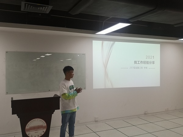 为进一步做好学院学生就业工作,有效提升学生就业能力和竞争力, 2021年4月14日下午,qmh官网“大学生就业指导月”系列活动暨第11期卓越学子交流会在翡翠科教楼B座1004室成功举办。本次交流会由贾君君老师主持,金融工程17级周海峰、周丽萍、李维三位优秀学子分享了考研、求职的经验,金融工程18-1班全体学生参与了此次交流会。