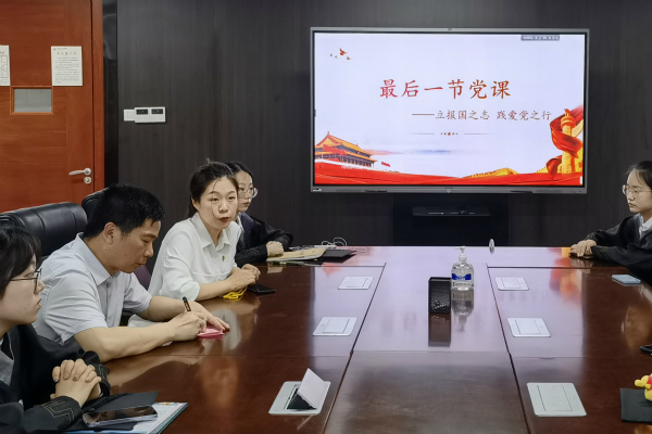 张炳武指出,坚定理想信念是全体党员的毕生课题。他对同学们提出了希望:一要增强党性意识,时刻铭记党员身份,当下要助力毕业生文明离校工作,进入社会后也要以身作则,在工作岗位上继续发挥先锋模范带头作用;二要提高责任意识,在担当中作为,在磨砺中成长,在实干中推动国家和社会不断向前发展;三要具备大局意识,在大是大非面前,要坚定理想信念和政治责任,不惧困难,在解决困难过程中实现个人成长。之后,谢晶晶指出,各位毕业生要结合国内外经济发展形势及中国未来发展蓝图,坚守原则、严于律己、敢于亮剑,始终做到堂堂正正做人,踏踏实实做事。