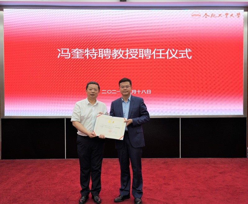 聘任仪式上,陈刚为冯奎研究员颁发聘任证书,校长助理、研究生院常务副院长刘心报介绍了冯奎研究员的简历及学术成就,科研院副院长梁昌勇就双方下一步合作开展工作做了交流。仪式由党委教师工作部部长、人事处处长郑利平主持。