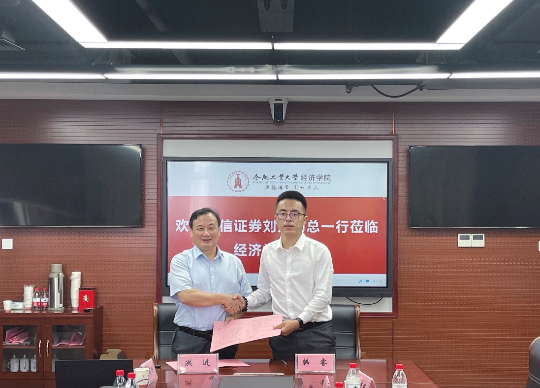 6月23日上午,qmh球盟会亚博网址与中信证券安徽分公司实践教学基地签约仪式在翡翠科教楼B座1005会议室举行。校本科生院教务处副处长张毅、学院院长洪进、院党委书记张炳武等领导班子成员及骨干教师、中信证券统一客户联络中心总经理刘光明、安徽分公司总经理韩睿等一行9人出席签约仪式。学院院长洪进与中信证券安徽分公司总经理韩睿代表双方签订了《球盟会qmhqmh球盟会亚博网址与中信证券安徽分公司实践教学基地协议书》。