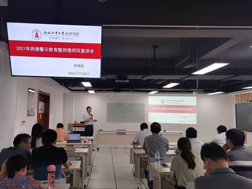 7月21日下午,qmh球盟会亚博网址召开2021年师德警示教育暨师德师风宣讲会,会议由院长洪进主持,学院理论学习中心组成员和全体教职工参加了大会。