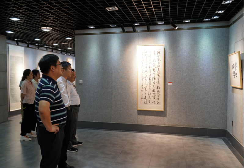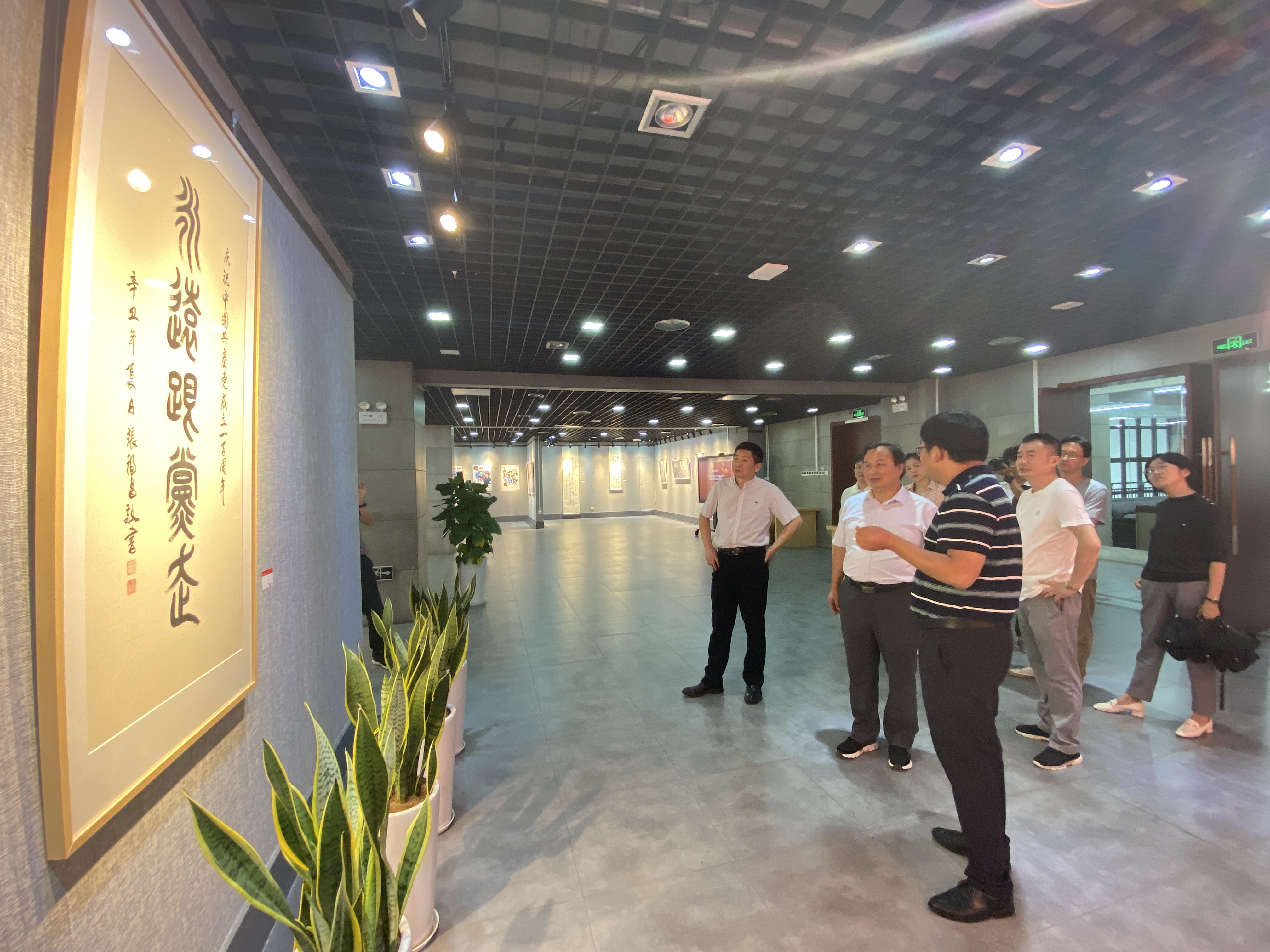在展厅内,理论学习中心组成员不时驻足观看,交流感悟体会,认真仔细地欣赏每一幅作品、每一张字画、每一个文创产品,在书画作品中找寻为民族谋复兴、为人民谋幸福的不变初心,从百年党史中汲取前行力量,让初心融入血脉,把使命扛在肩头,深刻感悟百年党史的真理伟力和实践伟力。大家纷纷表示,在庆祝中国共产党建党100周年之际,以“党建+艺术”结合的方式,以美术作品讴歌100年来中国共产党作出的卓越贡献和取得的伟大成就,发出了爱党爱国最强音,彰显了为时代画像、为时代明德的文化自信,抒发了对中国共产党的热爱之情。通过参观作品展,中心组成员从历史的力量中承接精神、理想、使命,更加坚定扛起“为党育人、为国育才”的使命任务,为学校建设发展贡献智慧和力量。