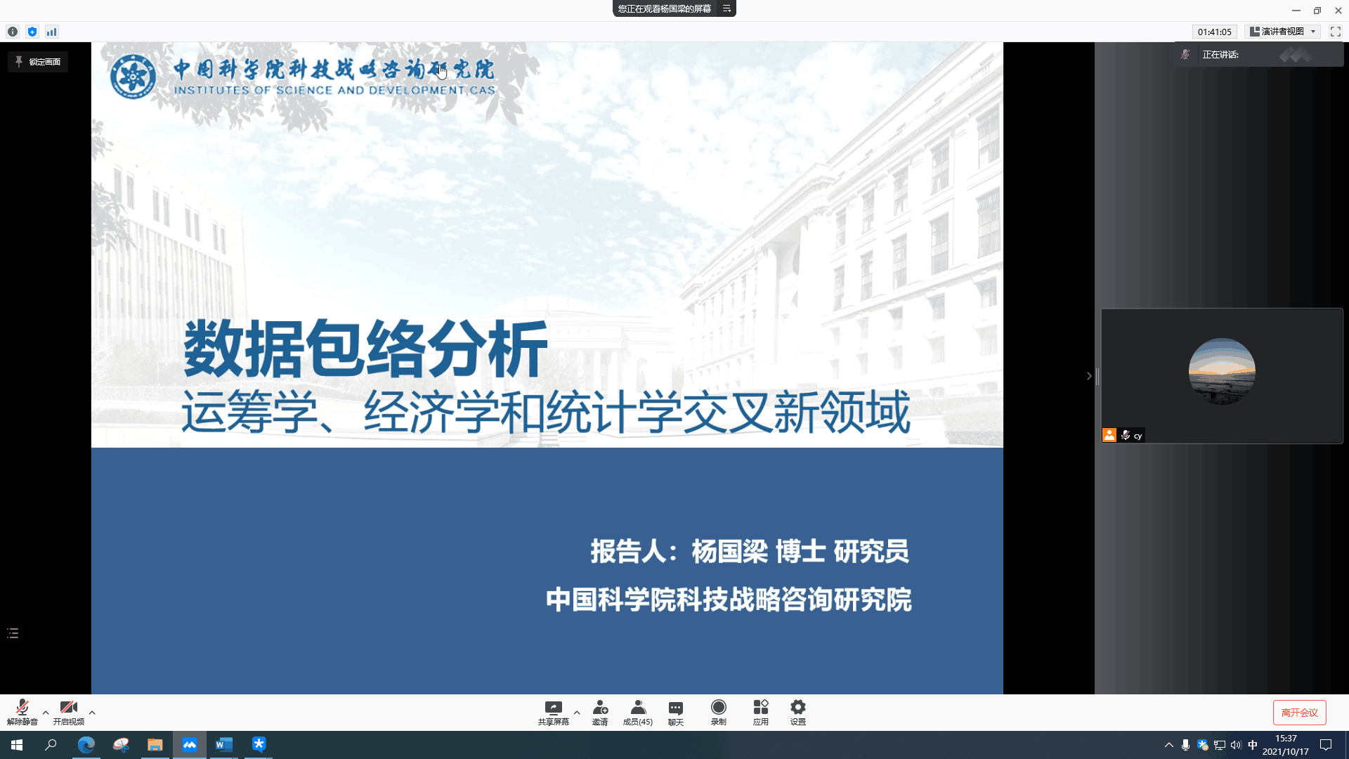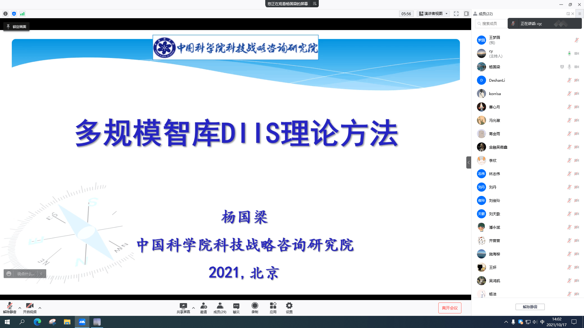2021年10月17日下午,学院邀请中国科学院科技战略咨询研究院、中国科学院大学杨国梁研究员开展了两场线上学术交流活动,qmh球盟会亚博网址陈亚副教授主持了本报告会。