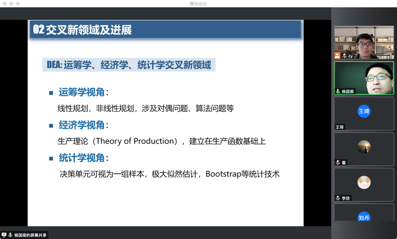 杨国梁教授首先简要介绍了数据包络分析(DEA)的基本理论,包括DEA理论的起源、经典DEA模型以及对偶理论等知识。
