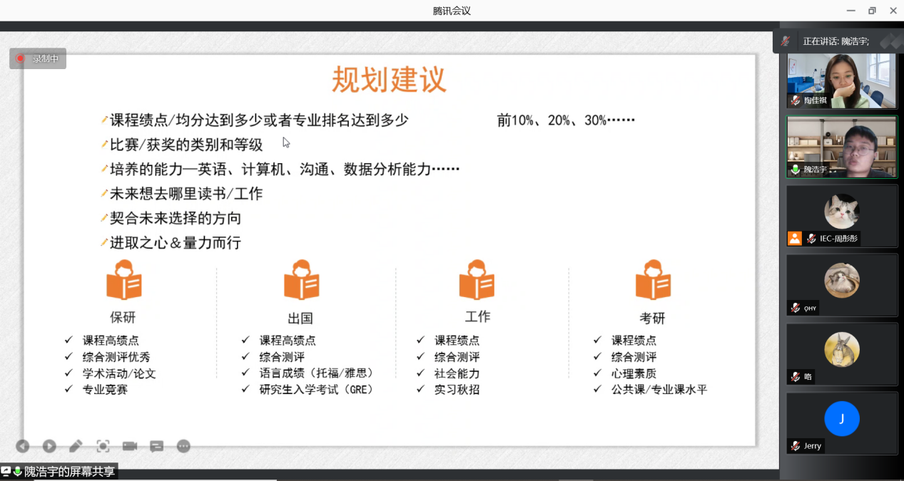 2021年10月18日晚,qmh官网第15期卓越学子交流会“大学学业生涯规划系列(一)”在线上成功举办。本次交流会邀请到了2016级优秀保研校友陶佳祺与2017级优秀考研校友隗浩宇进行经验分享,qmh官网四十余名本科生参与了本次交流会。