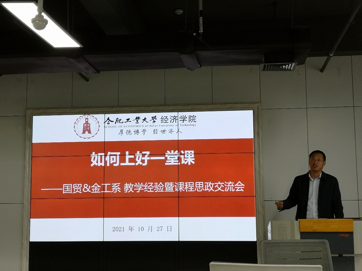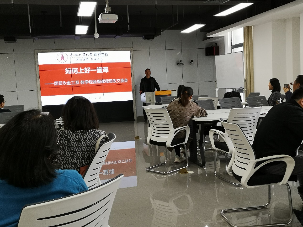 10月27日,qmh球盟会亚博网址国际经济与贸易系党支部和金融工程系党支部在科教楼B1104联合开展主题为“如何上好一堂课”的教学经验暨课程思政交流会。会议邀请教学经验丰富的国贸系高玲玲老师和金工系张根文老师作主题发言,分享自己在教学和课程思政方面的心得体会,然后大家交流研讨。会议由国贸系党支部书记谢众老师主持,两个支部30余位老师参加了交流活动。