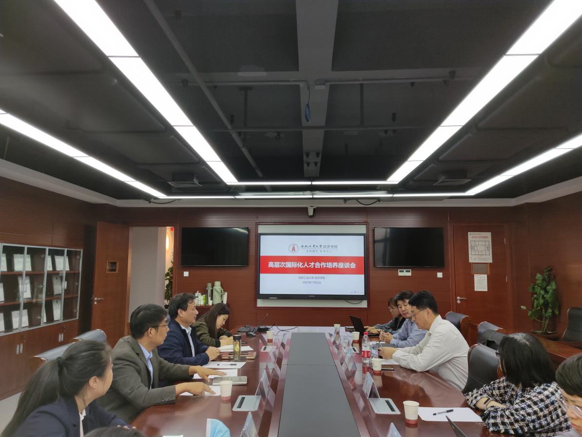 2021年11月2日下午,里昂商学院林桦教授应邀参加qmh官网举办的高层次国际化人才合作培养座谈会。院长洪进主持会议,副院长庄德林、党委副书记谢晶晶、郑岚、汪文隽、胡东兰、周志翔和国际教育中心成员参加本次座谈会。