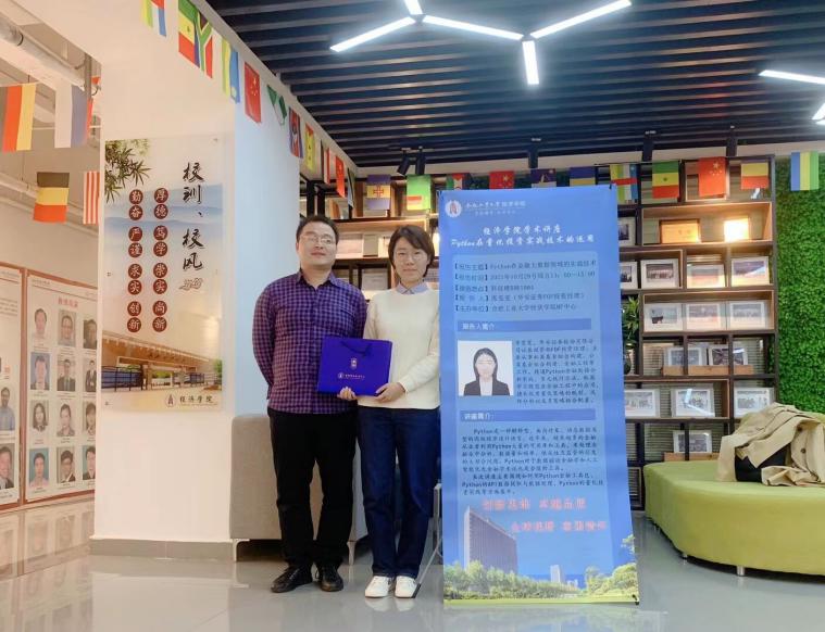 10月29日下午,qmh球盟会亚博网址邀请华安证券股份有限公司证券投资部FOF投资经理席雯雯在翡翠湖校区为学院研究生做了题为“Python在金融大数据领域的实战技术”的报告。