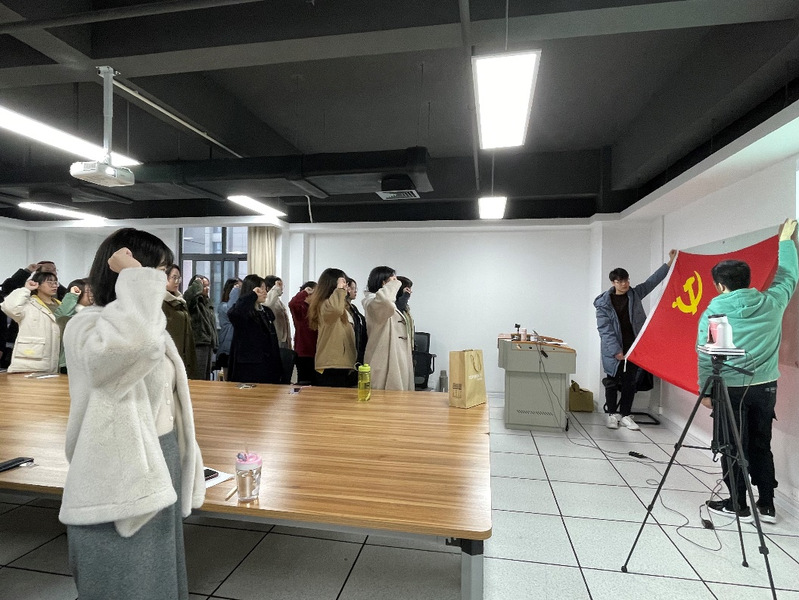 会议开始前举行了新党员入党宣誓暨老党员重温入党誓词仪式,范悦带领现场全体党员庄严地面向党旗,高举右拳,郑重宣誓,表达了对党的无限忠诚与热爱。接着,谢逢彬带领大家学习《决议》,《决议》回顾党走过的百年奋斗历程,总结党的百年奋斗重大成就和历史经验,着重阐释党的十八大以来党和国家事业取得的历史性成就、发生的历史性变革,对实现第二个百年奋斗目标提出明确要求。学习中谢逢彬强调,作为一名党员,要高度重视和善于总结历史经验,以史为鉴,推进自我革命,保持自身先进性。另外谢逢彬鼓励党员同志们在新的百年征程上,要以咬定青山不放松的执着、以行百里者半九十的清醒坚持不懈推进民族复兴,为实现第二个百年奋斗目标持续努力。