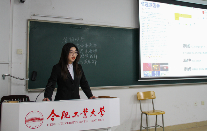各学生组织干事按照抽签顺序依次进行ppt展示,分别从自我介绍、工作经历、工作思考及认识、未来工作规划四个方面总结了自己近一个学期以来的工作,分享了自己在工作中的感悟与思考。面对学生组织负责人提出的问题,干事们认真聆听,积极应答,对于答辩中存在的问题,干事们虚心接受,并表示会积极改正。