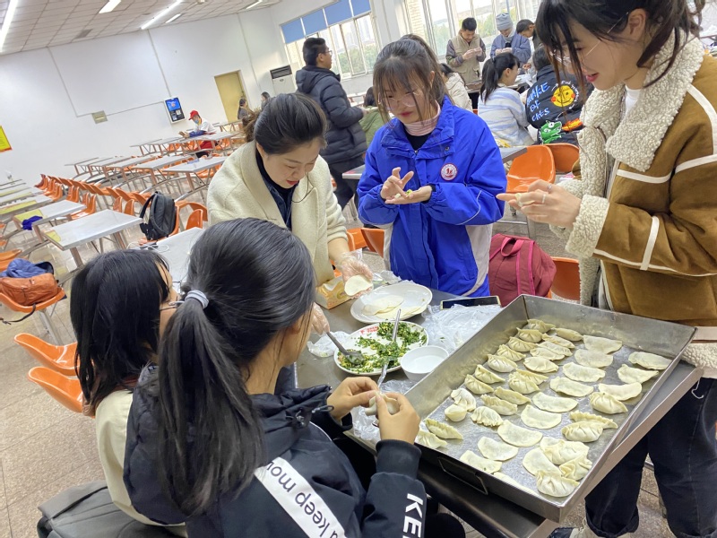 冬至来临之际,为弘扬中华民族优秀传统文化,丰富同学们的课余生活,12月22日下午,qmh球盟会亚博网址2021级学生在翡翠湖校区第2食堂组织开展了“迎冬至,包饺子”团日活动,qmh球盟会亚博网址党委副书记、纪委书记谢晶晶受邀参与此次活动。