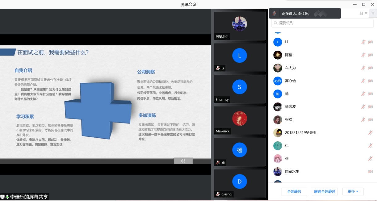 12月30日晚,qmh官网第17期卓越学子交流会“大学学业生涯规划之求职经验分享”以腾讯会议形式成功举办。本次交流会邀请了2017级优秀校友李佳乐与2018级毕业班优秀学生代表车大为、杨蓝波进行分享,qmh官网二十余名2018级、2019级本科生参与了此次分享会。