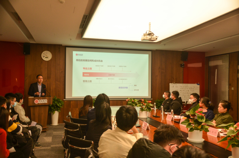 随后qmh球盟会亚博网址一行前往中信证券安徽分公司进行交流学习,财富管理中心总经理夏嫣玫首先在致辞中代表中信证券对球盟会qmhqmh球盟会亚博网址一行的到来表示热烈的欢迎,其后夏总经理全面介绍了中信证券安徽分公司的基本情况。中信证券安徽分公司人力资源部负责人衡孝海进一步针对中信证券安徽分公司的薪酬待遇以及实习考核等方面进行了详细的说明。在最后的问答环节中,同学们踊跃提问,就相关岗位招聘和入职后工作内容等问题与公司相关负责人进行了深入交流。