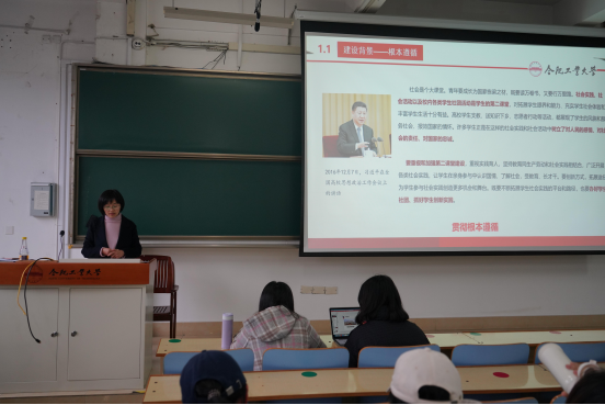 但泱泱老师从建设背景、主要举措、工作成效和系统操作四个方面对我校“第二课堂成绩单”制度进行了系统讲解,重点解读了“第二课堂成绩单”制度的具体实施办法及主要举措,从“思政学习”、“科技创新”、“体育健身”和“劳动实践”四个必修模块及六个选修模块,深入阐述“第二课堂成绩单”制度的实施方案,强调了“第二课堂成绩单”制度是学校人才培养体系的重要组成部分,是落实立德树人根本任务,坚持“五育并举”全面发展素质教育的有效途径,引导广大新生规划好未来四年的课堂与实践学习,争取获得一份满意的“第二课堂成绩单”。