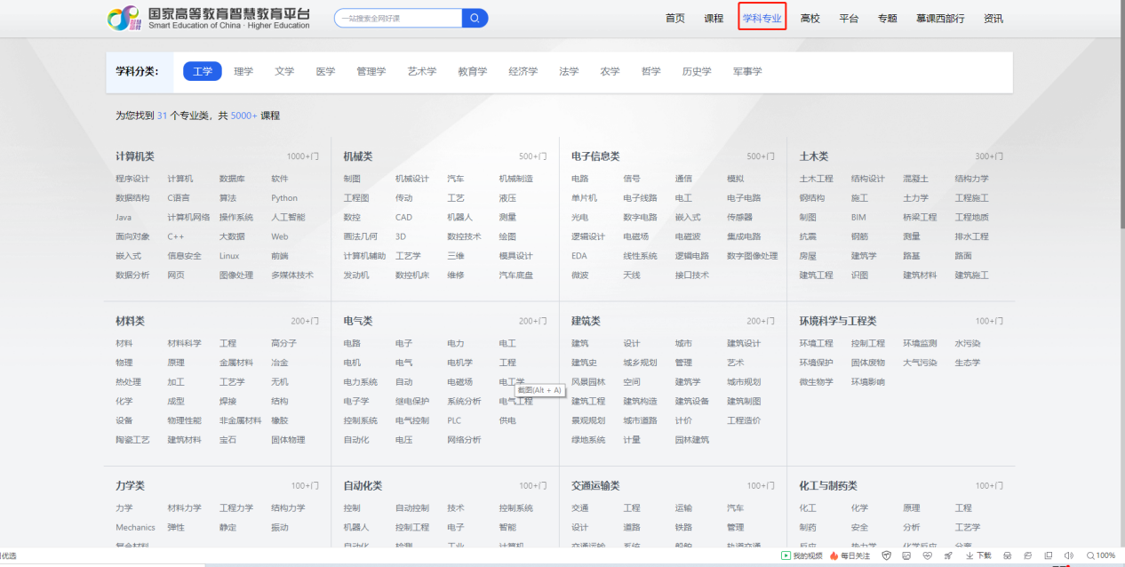31 个专业类, 5000+ 课程