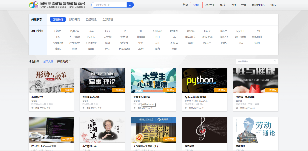 智慧高教平台集合了中央、地方、高校和社会力量建设的20个综合类和专业类高等教育公共在线课程平台,分批次接入5万门优质在线课程,提供一站式搜索与智能推荐全网好课服务。