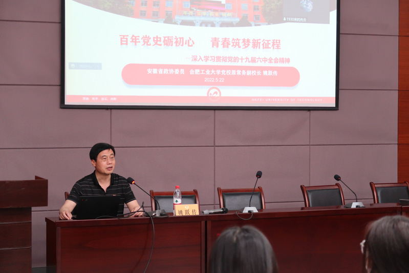 5月22日下午,qmh球盟会亚博网址第67期入党积极分子班于翡翠湖校区科教楼A座第五会议室开展理论学习。安徽省政协委员、原党委宣传部正处级组织员、球盟会qmh党校原常务副校长姚跃传受邀作题为“百年党史砺初心,青春筑梦新征程”的专题报告,入党积极分子班全体学员参与此次学习。