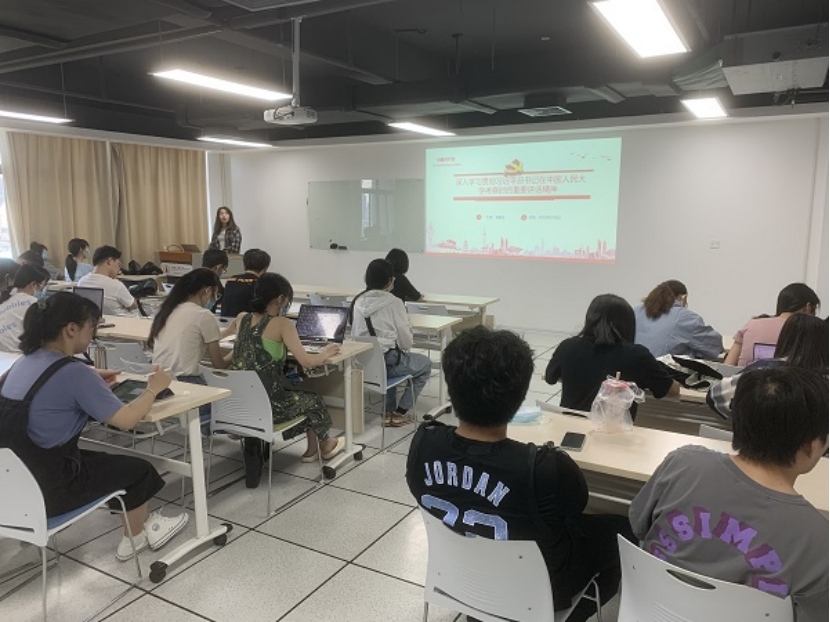 2022年4月25 日,习近平总书记到中国人民大学考察调研并发表重要讲话,与师生代表面对面交流谈心,精辟阐述实现民族复兴历史伟业赋予高校的战略使命,鲜明论述高素质高校教师队伍的深厚内涵,生动描述堪当民族复兴重任时代新人的价值追求,勉励全国广大青年牢记党的教诲,立志民族复兴,不负韶华,不负时代,不负人民,在青春的赛道奋力奔跑,争取跑出当代青年的最好成绩。吴曼玉同志首先从提高政治站位的角度切入,阐释了习近平总书记重要讲话是新时代新征程上加强党对高等教育全面领导的纲领性文献、是推动高等教育更好服务国家战略的全局性号令、是激励高校师生爱党报国的根本性指引。然后,她又从把握精髓要义的角度,分享了分层分类组织学习教育和多种渠道做好宣传阐释的重要意义。最后,她进一步从勇担责任使命的角度,谈到坚持和加强党对高校的全面领导、深化新时代思政课改革创新、推进哲学社会科学建设发展、打造高素质专业化教师队伍、培养堪当民族复兴重任的时代新人这些方面对于新时代教育强国的重要意义。