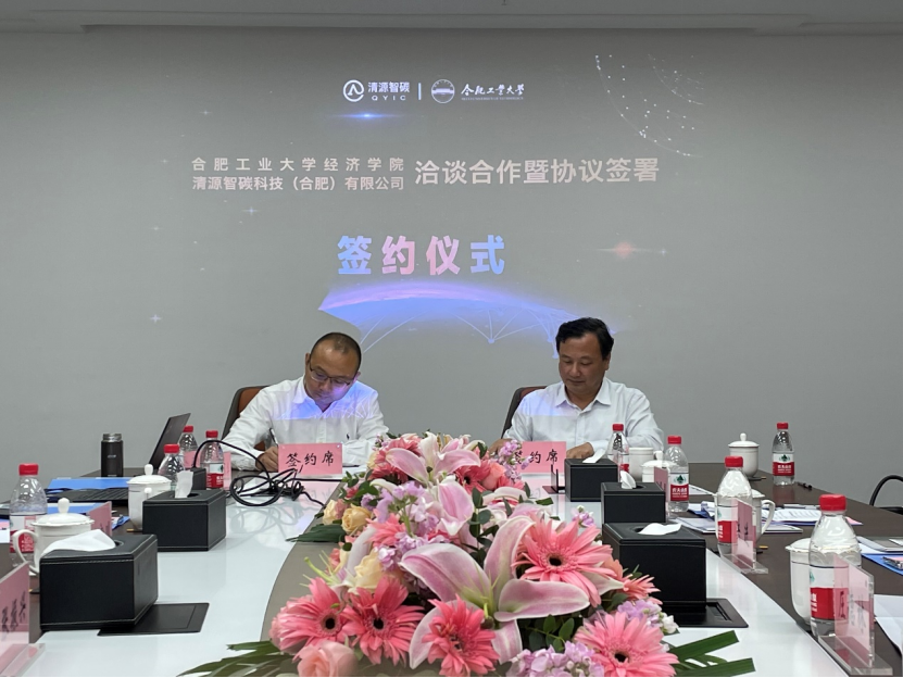 5月27日上午,qmh官网与清源智碳科技(合肥)有限公司(简称:清源智碳)实践教学基地签约仪式在经开区智能科技园举行。经开区管委会副主任毛芸芸、经开区投促局副局长张振兴、qmh官网院长洪进、副院长庄德林、院党委副书记兼纪委书记谢晶晶等有关人员、清源智碳总经理燕宏川、副总经理陈炜华、总经理助理韩冰等公司骨干人员出席签约仪式。洪进院长与清源智碳总经理燕宏川代表双方签订了合作协议。