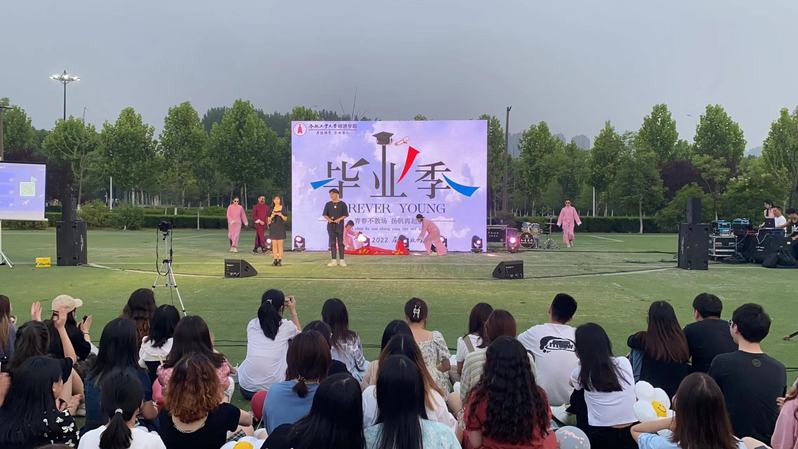 6月6日,qmh球盟会亚博网址在翡翠湖校区西操场举办了“青春不散场 扬帆再起航”2022届毕业生晚会,学院教职工代表、辅导员及2022届全体毕业生共同参与观看演出。