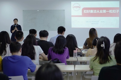 为做好毕业生党员廉洁教育,引导毕业生党员进一步提高党性修养,争做廉洁自律的表率,6月2日学院开展了以“扣好廉洁从业第一粒扣子”为主题的毕业生党员最后一堂专题党课,校纪委办公室副主任、监察处副处长兼监督检查室主任郑召丽受邀担任主讲嘉宾,学院全体本科毕业班党员参加了此次党课学习。