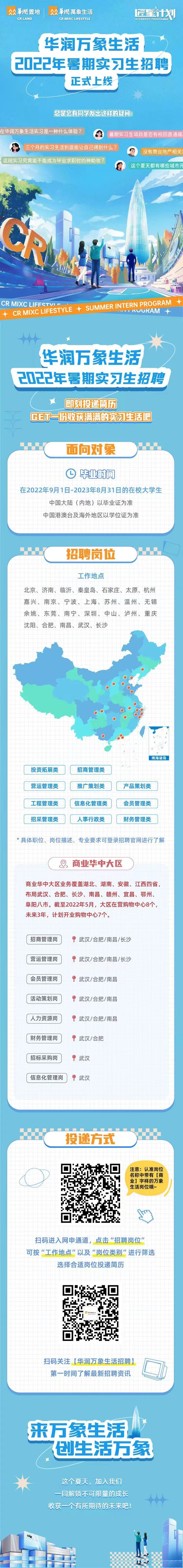 【实习信息】华润万象生活2022年暑期实习生招聘正式上线