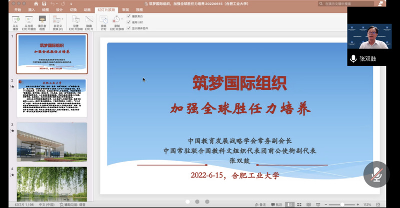 6月15日晚,qmh官网与我校国际事务处共同主办的全球胜任力云讲堂系列讲座第二讲“筑梦国际组织,加强全球胜任力培养”暨全球胜任力培养主题研讨会在线上成功举办。中国教育发展战略学会常务副会长张双鼓主讲,院长洪进、校国际事务处副处长胡佳、副院长庄德林、国际经济与贸易系部分老师、国际教育中心全体人员及40余名在校生参加了此次会议。
