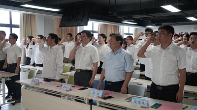 活动在庄严的《国际歌》中开始。入党宣誓环节,党员同志们庄重肃立,举起右拳,面对党旗庄严宣誓,表达了对党的忠诚以及为共产主义事业奋斗终身的的理想和决心。宣誓结束后,学院党委委员、教工党支部书记为新发展的党员逐一发放了党徽、《中国共产党章程》和《共产党宣言》。