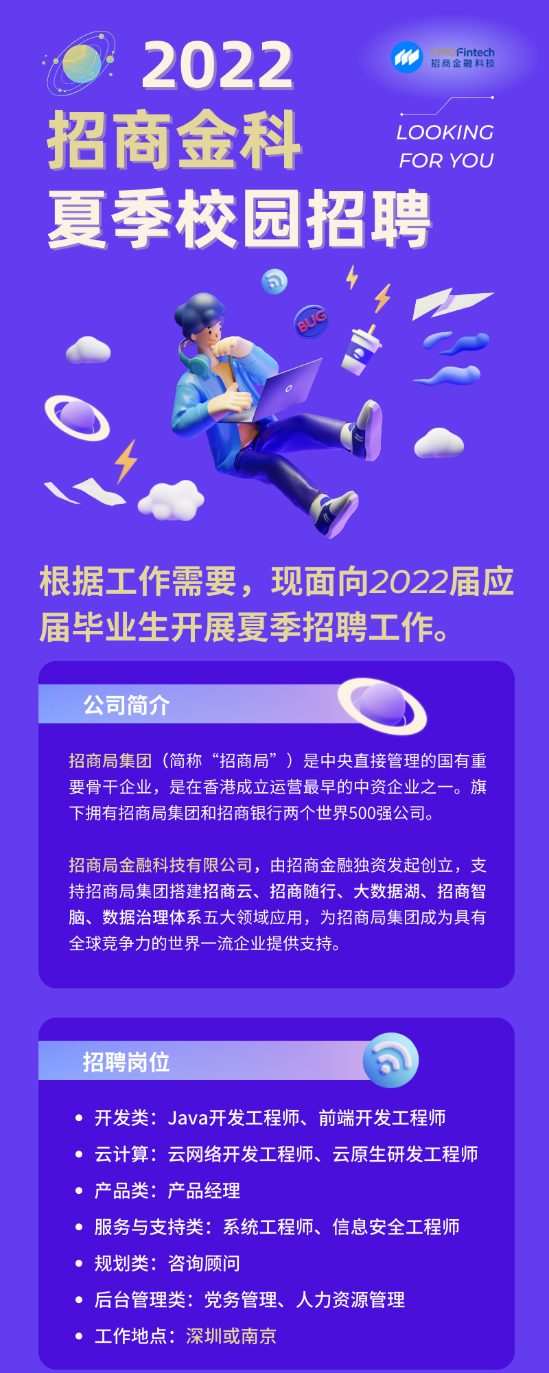 【招聘信息】招商局金融科技2022届夏季校园招聘火热进行中