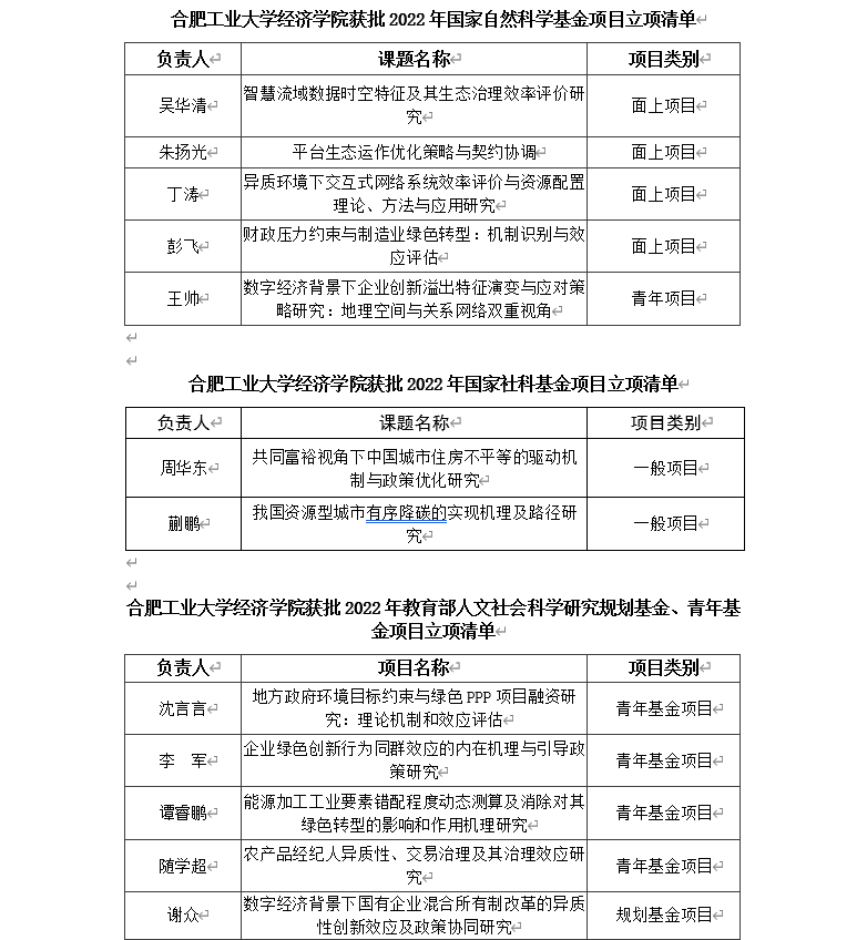 教育部社会科学司公布的2022年度教育部人文社会科学研究一般项目评审结果的公示显示,沈言言、李军、谭睿鹏、随学超四位老师获批教育部人文社会科学青年基金项目立项,谢众老师获批教育部人文社会科学规划基金项目立项。