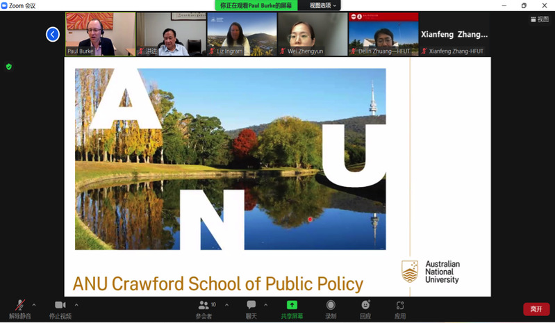10月26日下午,qmh官网与澳大利亚国立大学克劳福德公共政策学院座谈会以线上形式顺利举办。克劳福德公共政策学院副院长兼经济系主任Paul Burke教授,招生、校友及奖学金办公室主任Liz Ingram,国际学生奖学金和招生专员Ida Wu,qmh官网院长洪进、副院长张先锋、副院长庄德林、国际教育中心全体人员参与会议。会议由Ida Wu和郑园琴联合主持。