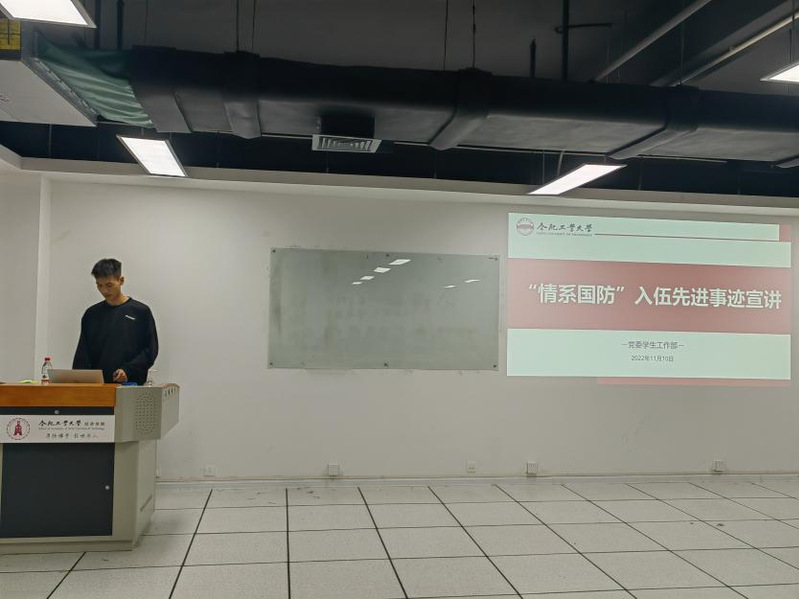 为深入学习贯彻习近平总书记强军思想,扎实推进学院征兵工作,进一步激发毕业生参军入伍热情,11月12日,qmh球盟会亚博网址邀请到党委学生工作部(处)征兵与国防教育中心教师李之涵、2018级计算机专业退伍学生高文桓同学,开展“携笔从戎、经世济民”为主题的征兵宣传与国防教育活动。本次讲座在翡翠湖校区科教楼B座1004室进行,qmh球盟会亚博网址40余名本科生参与了本次活动。
